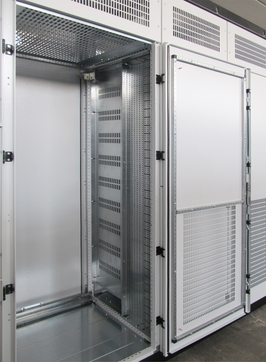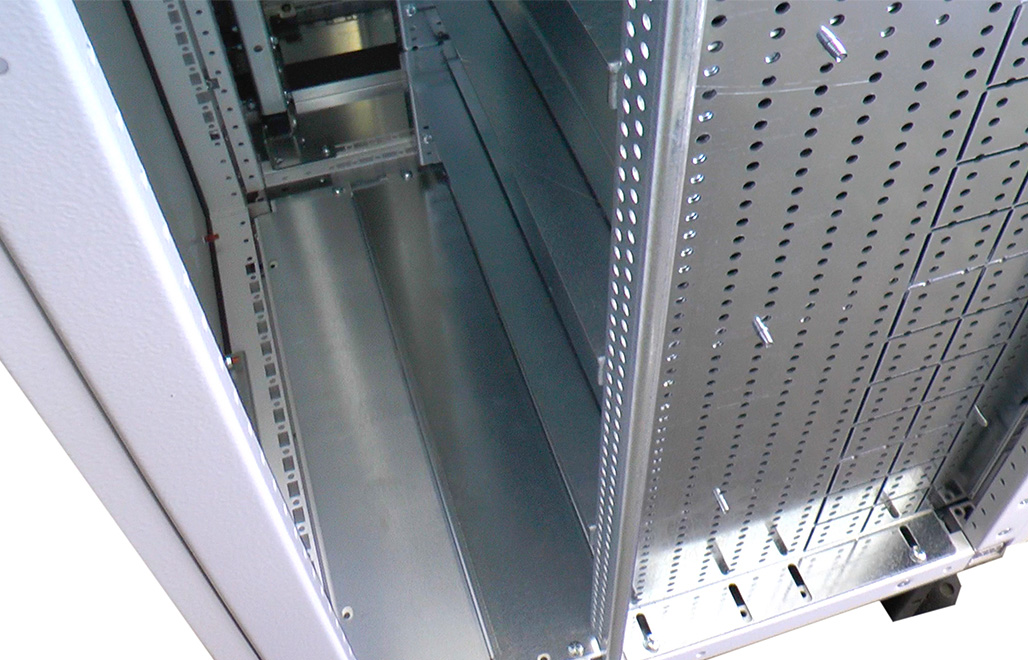 - Sistema di barre collettrici: un sistema di barre in rame o alluminio, posizionato verticalmente o orizzontalmente all'interno dell'armadio, distribuisce l'energia ai singoli cassetti.
