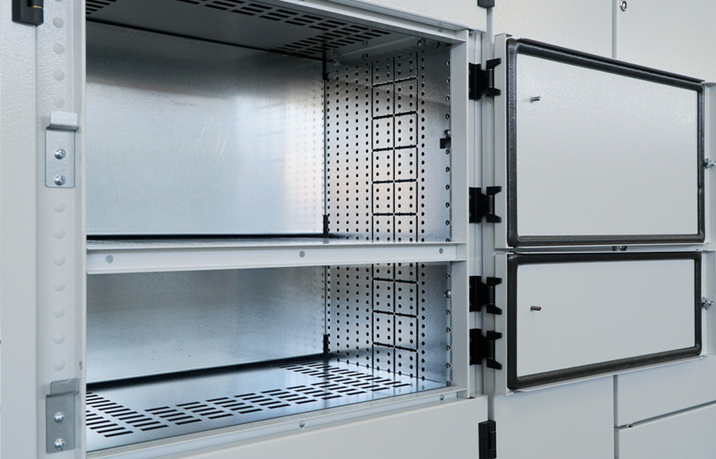 - Segregazione interna: i cassetti sono fisicamente separati l'uno dall'altro e dal sistema di barre di distribuzione principale. Questa segregazione, secondo la norma CEI EN 61439-2, garantisce un elevato livello di sicurezza, limitando la propagazione di eventuali guasti (come un arco elettrico) ad altre parti del quadro.