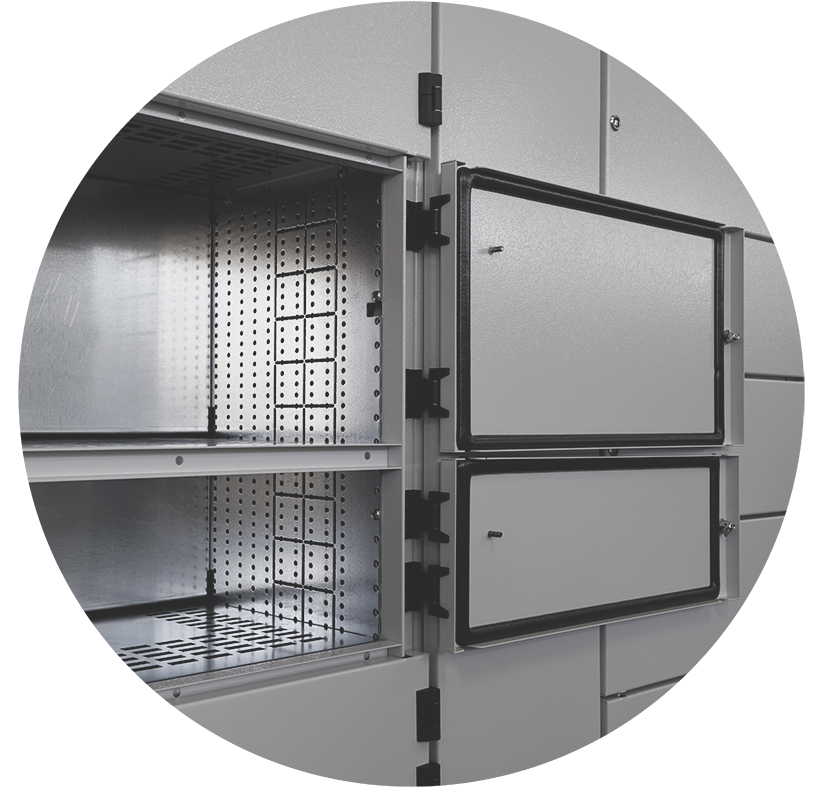 L'intero degli scomparti è studiato per contenere tutti i componenti necessari per l'avviamento, il controllo e la protezione del motore